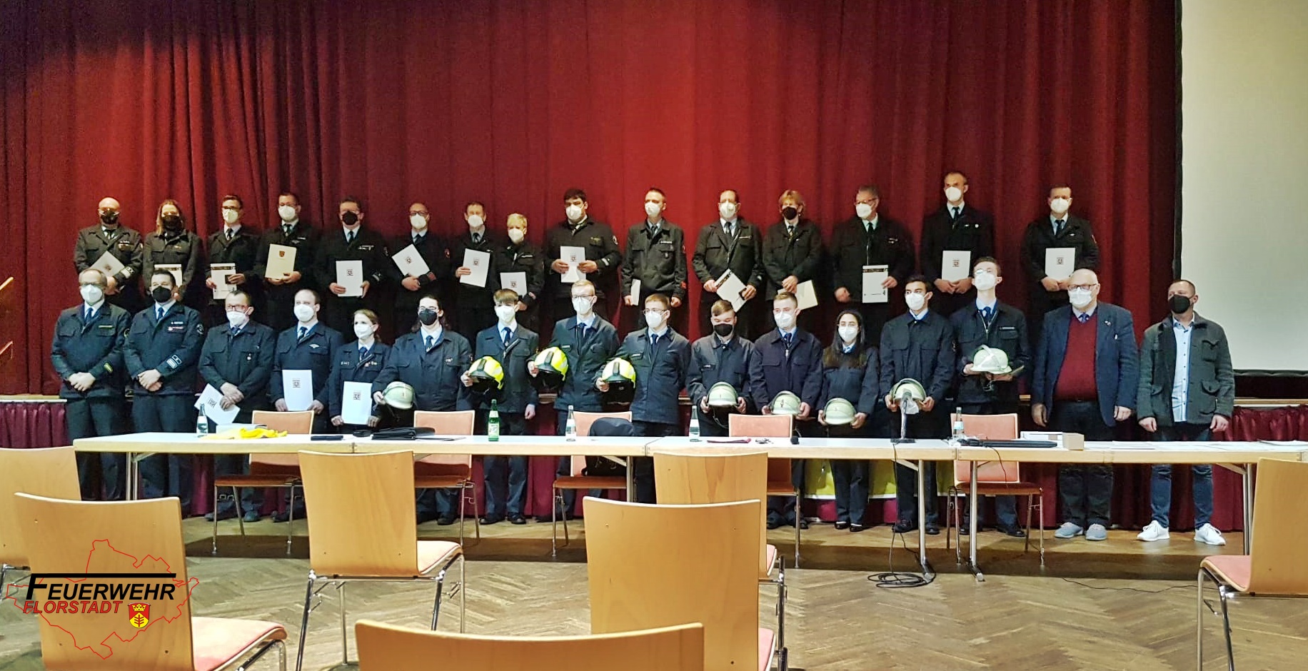 Nachdem im vergangenen Jahr die gemeinsame Jahreshauptversammlung aufgrund der Pandemie per Livestream stattfinden musste, freuten sich in diesem Jahr alle Mitglieder der Feuerwehr sowie Gäste auf eine fast normale Versammlung. Die Abstands- und Hygieneregeln wurden durch eine entsprechende Bestuhlung gewährleistet. Auch das tragen der FFP2-Masken und kontinuierliches Lüften des Saales ermöglichte eine gemeinsame Jahreshauptversammlung im Bürgerhaus in Nieder-Florstadt.
