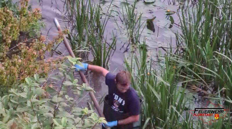 Am Mittwochabend wurden wir durch die Polizei zu einer Amtshilfe an der Horloffbrücke in Ober-Florstadt angefordert. Dort hatten Passanten Tierkadaver, die in dem Fluss trieben, entdeckt. Diese wurden von uns geborgen und an die Polizei übergeben, welche sich um den Abtransport kümmerte.