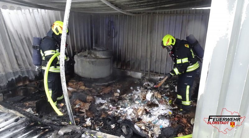 Da bereits auf der Anfahrt die Rauchsäule weithin sichtbar war, wurde das Alarmstichwort auf „F 2.1“ erhöht. Beim Eintreffen der ersten Kräfte aus Nieder Mockstadt stand der Müllunterstand, in dem unter anderem Papier gelagert wurde, bereits in Vollbrand. Während die Kräfte aus Nieder-Mockstadt bereits unter Atemschutz mit einem C-Rohr im Einsatz waren, wurde durch die Kernstadt eine Riegelstellung zu einem benachbarten Gebäude aufgebaut. Im weiteren Verlauf wurde der Müll mittels Dunghaken auseinander gezogen und abgelöscht.