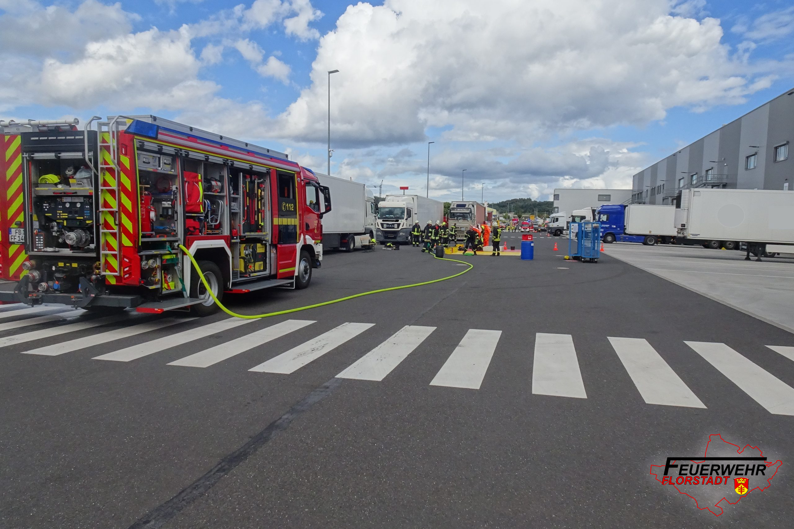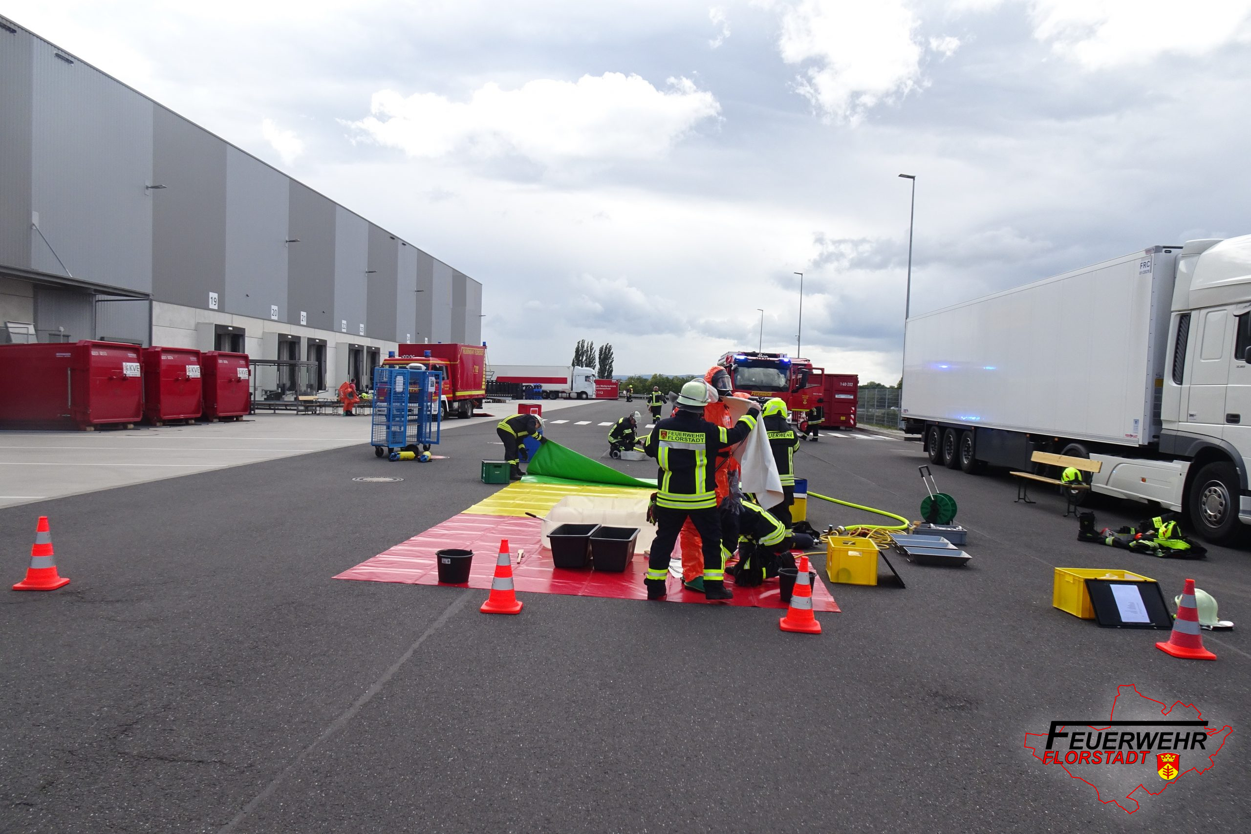 Am Dienstagnachmittag wurden alle Florstädter Wehren gemeinsam mit Einheiten aus Friedberg und Bad Nauheim zu einem Gefahrguteinsatz mit unbekannter Substanz in das Gewerbegiebiet nach Nieder-Mockstadt alarmiert.