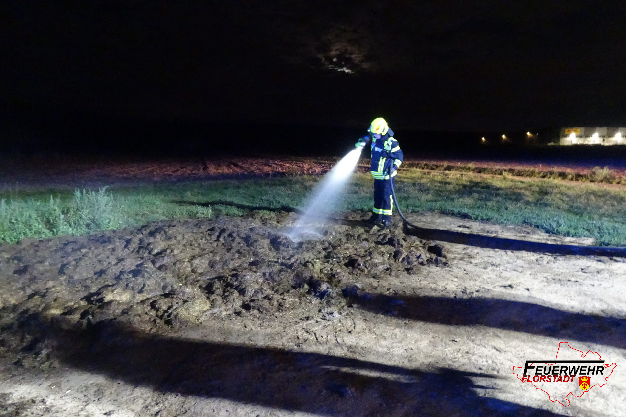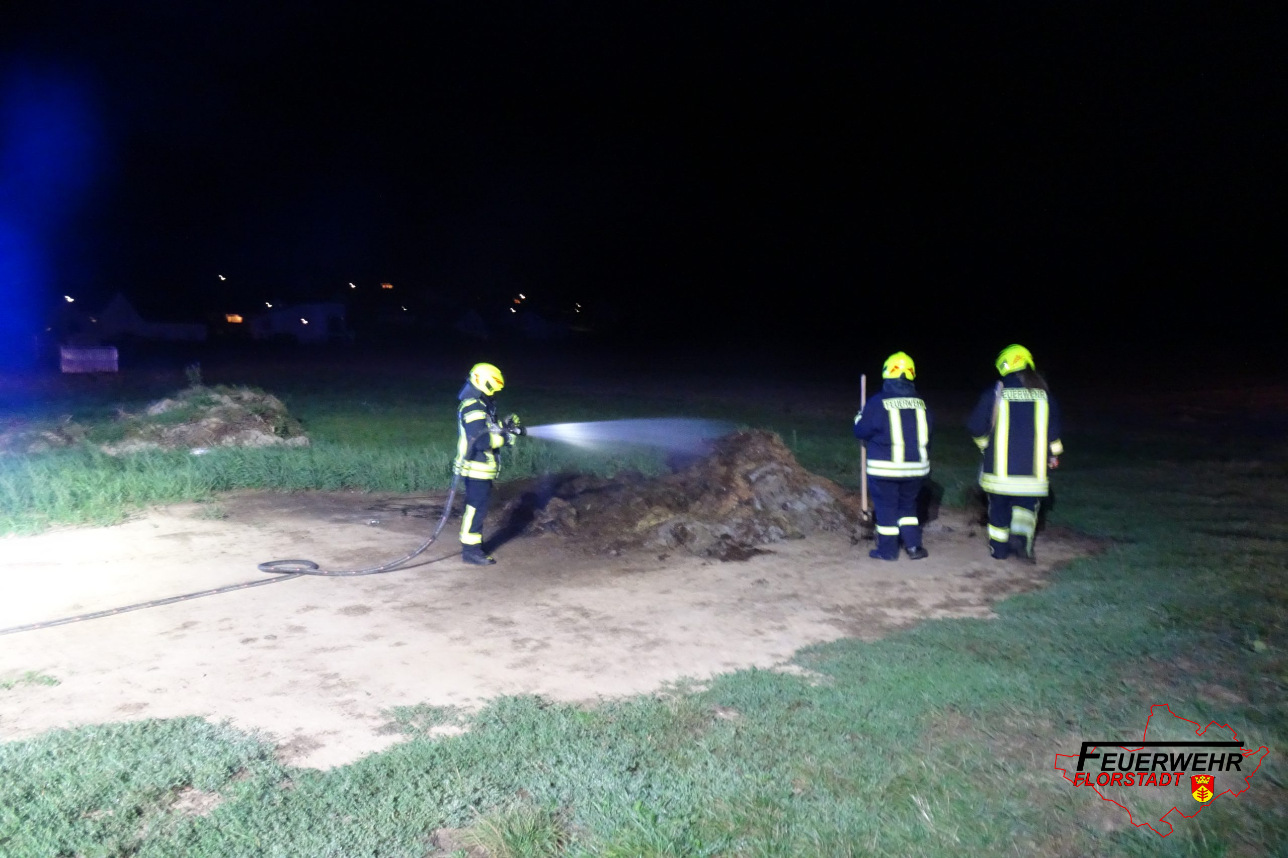 Vor Ort wurde ein rauchender Haufen Rasenschnitt der Stadt vorgefunden welcher mit dem Schnellangriff abgelöscht wurde.