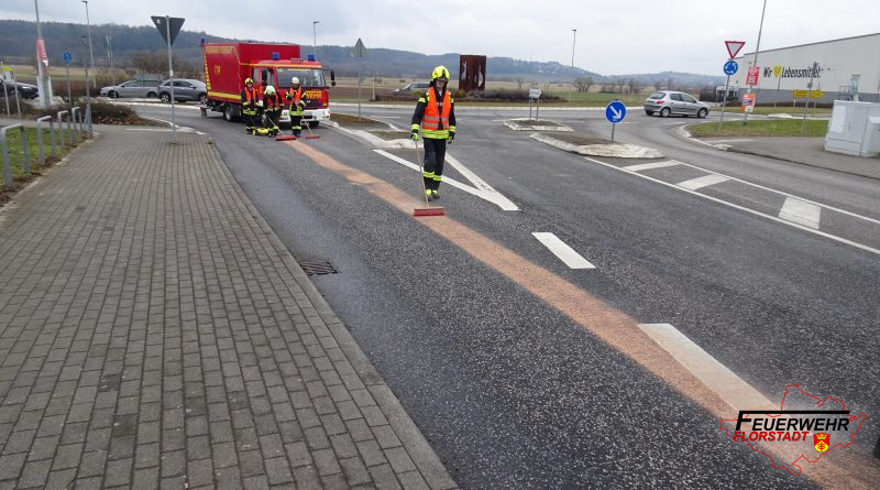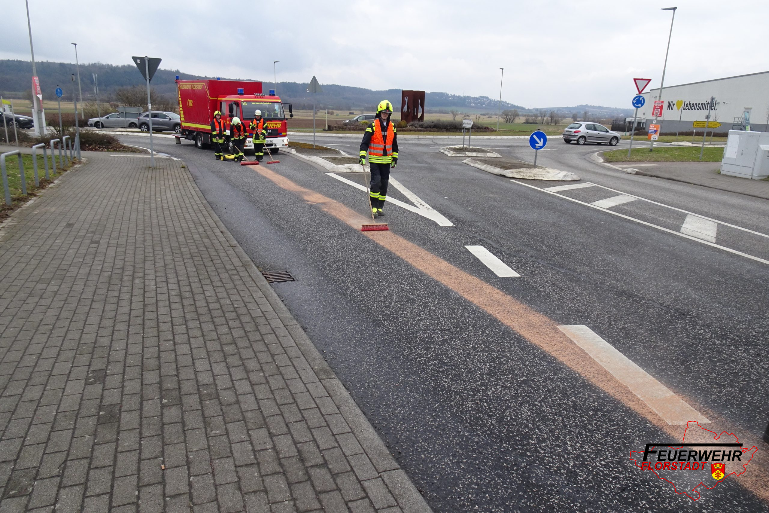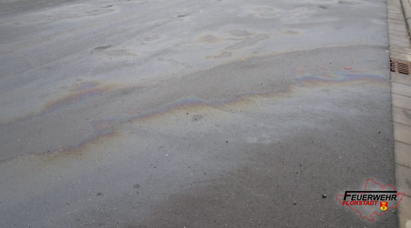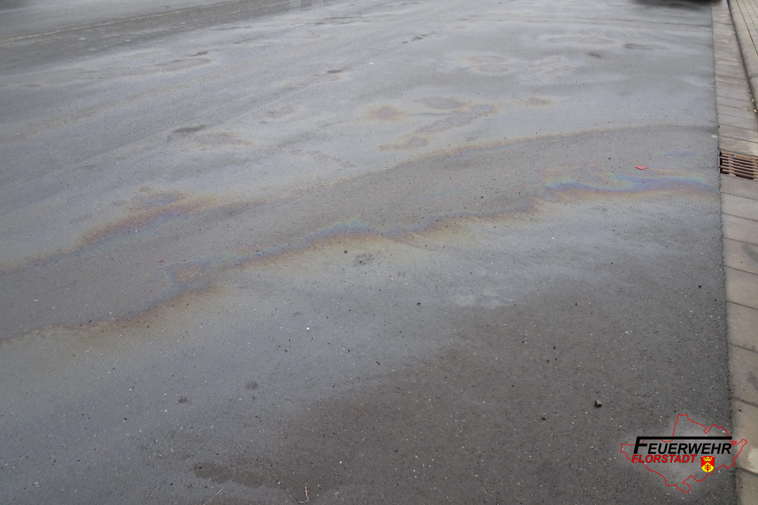 Die Ölspur wurde mit Bindemittel abgestreut und dieses anschließend wieder aufgenommen.