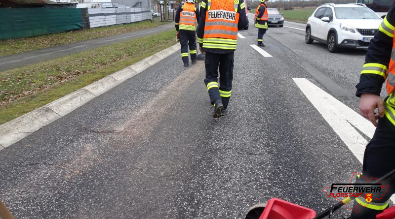 Während den Aufräumarbeiten vom vorherigen Einsatz informierte uns die Leitstelle per Funk über eine Ölspur im Bereich Parkstraße in Staden bis nach Nieder-Mockstadt in das dortige Industriegebiet.