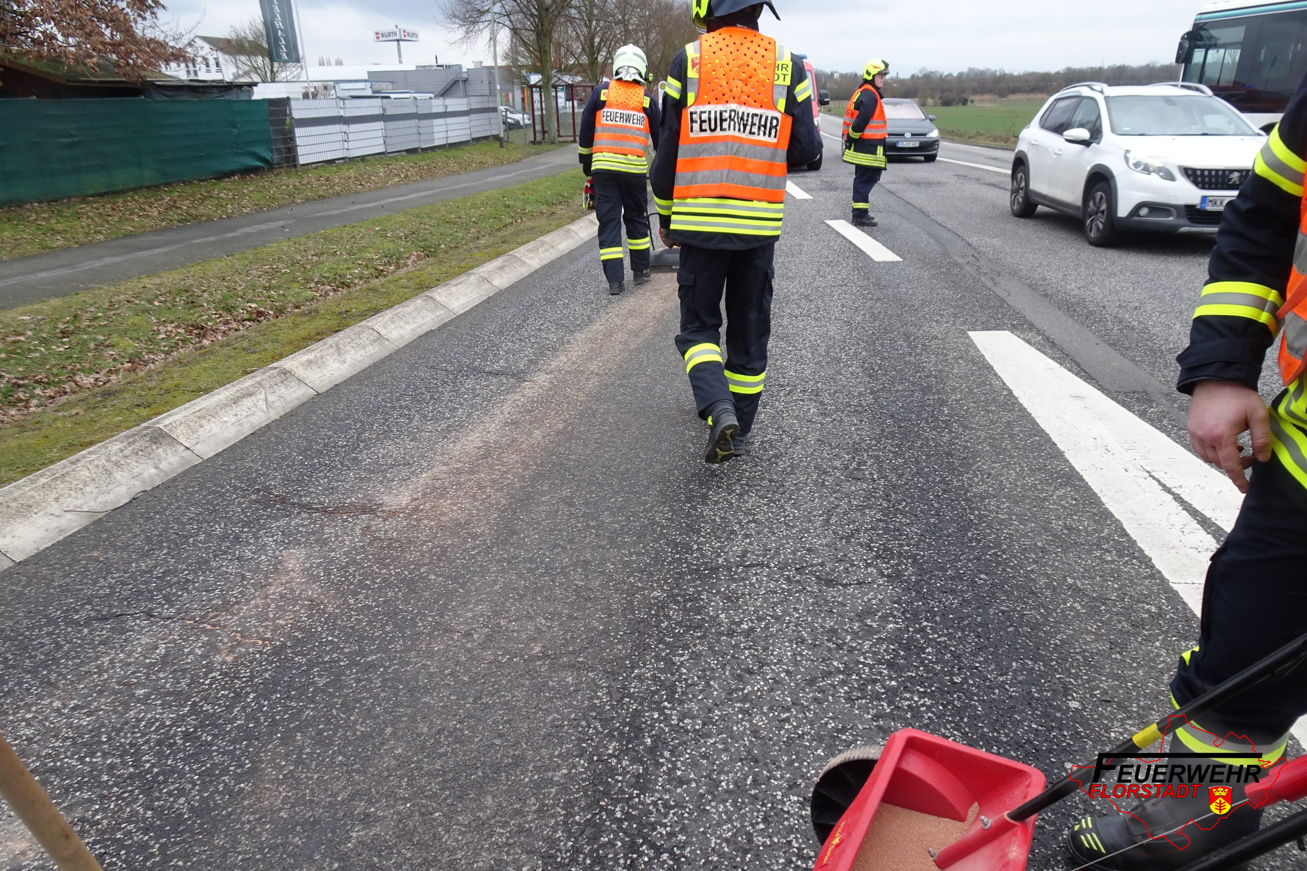 Die Feuerwehr Staden übernahm die Ölspur in Staden, während die Kernstadt die Fahrzeuge in Florstadt erst tauschte und wir dann die Ölspur in Nieder-Mockstadt übernahmen.