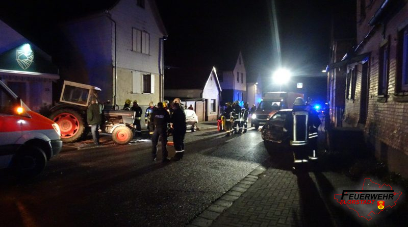 Am Samstagabend wurden wir zu einem Verkehrsunfall in die Altenstädter Straße nach Nieder-Florstadt alarmiert. Dort waren in der 30er-Zone ein PKW und ein Traktor kollidiert.