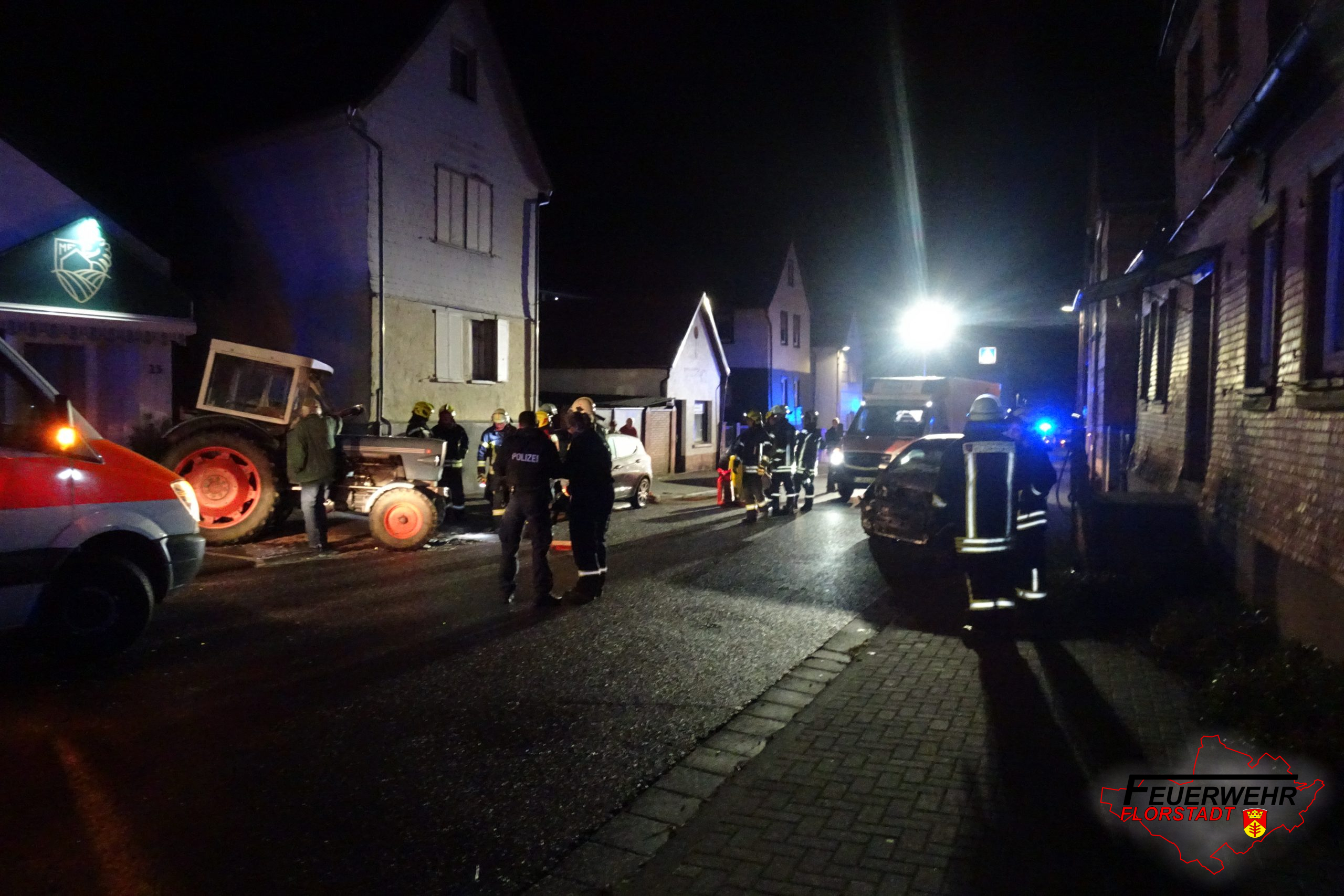 Am Samstagabend wurden wir zu einem Verkehrsunfall in die Altenstädter Straße nach Nieder-Florstadt alarmiert. Dort waren in der 30er-Zone ein PKW und ein Traktor kollidiert.